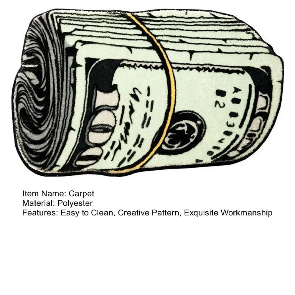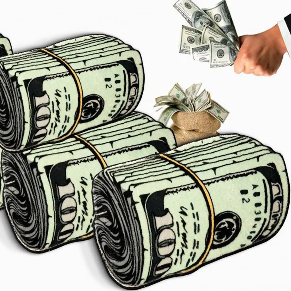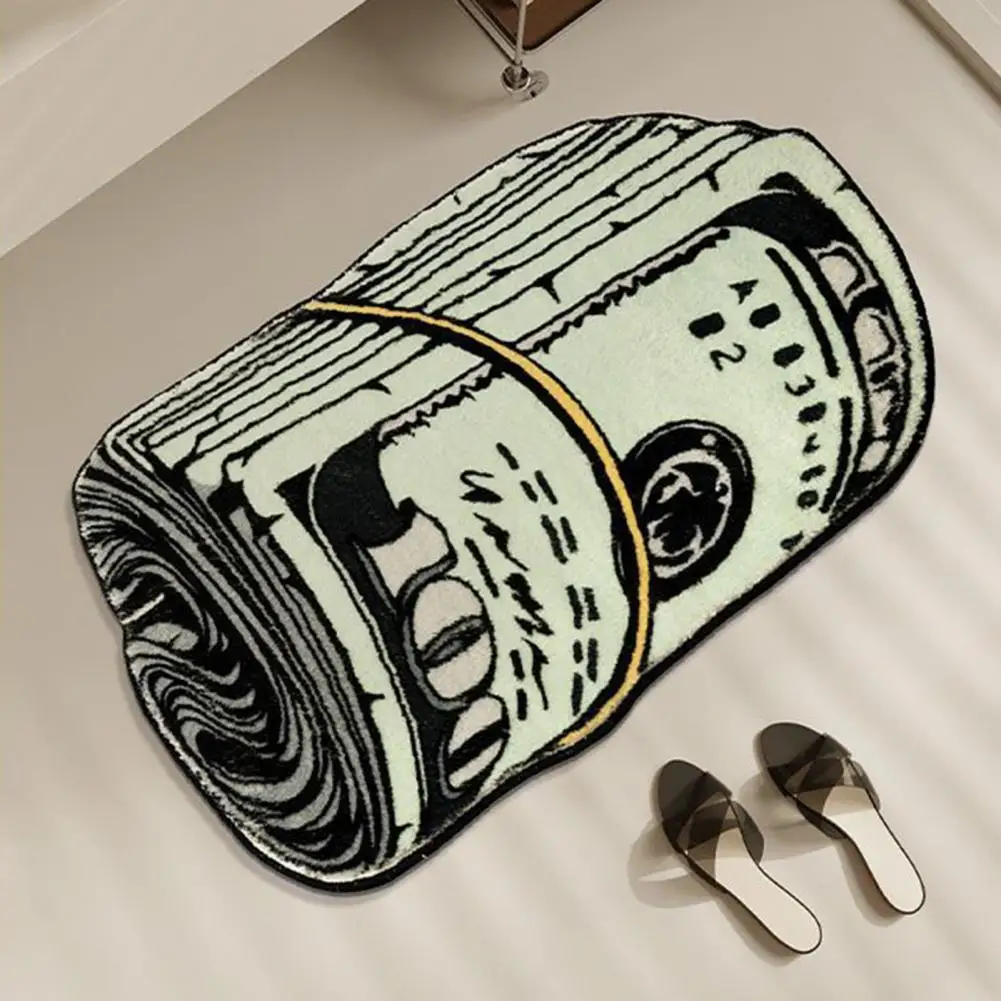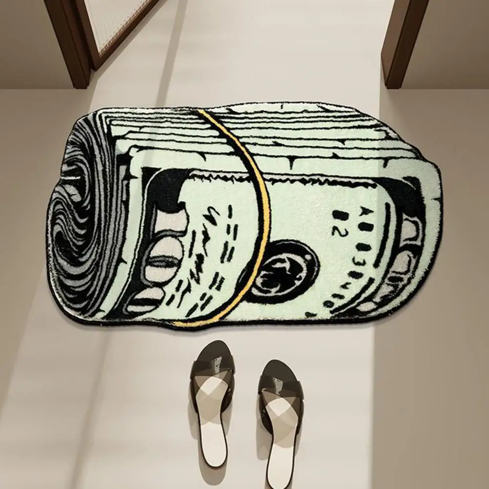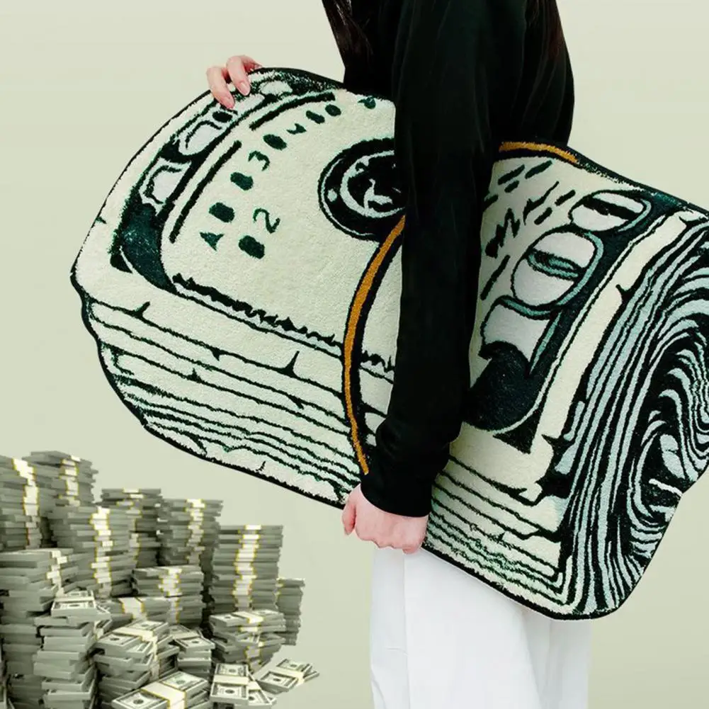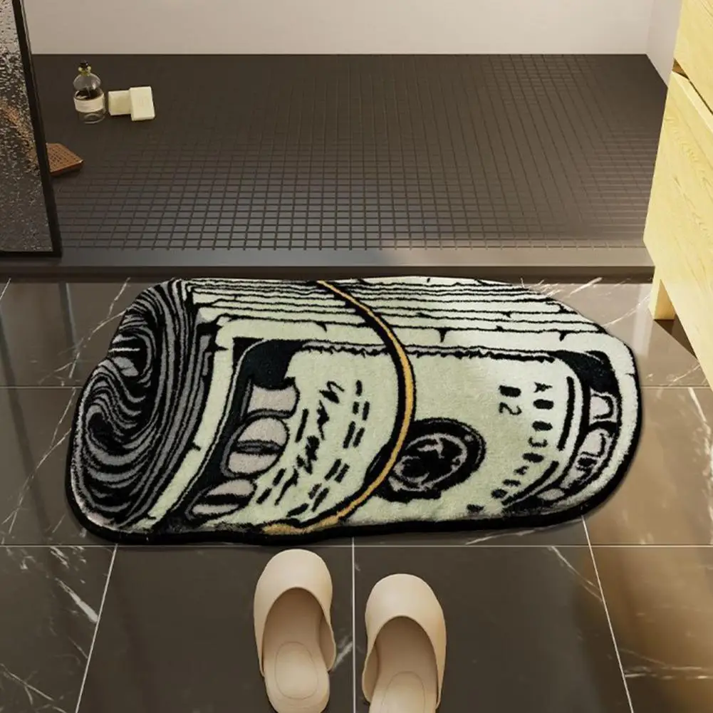 Alfombra suave y absorbente de larga duración, alfombra creativa con patrón de dinero para dormitorio, sala de estar y baño